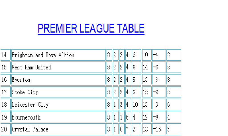 Top suggestions for current epl table.