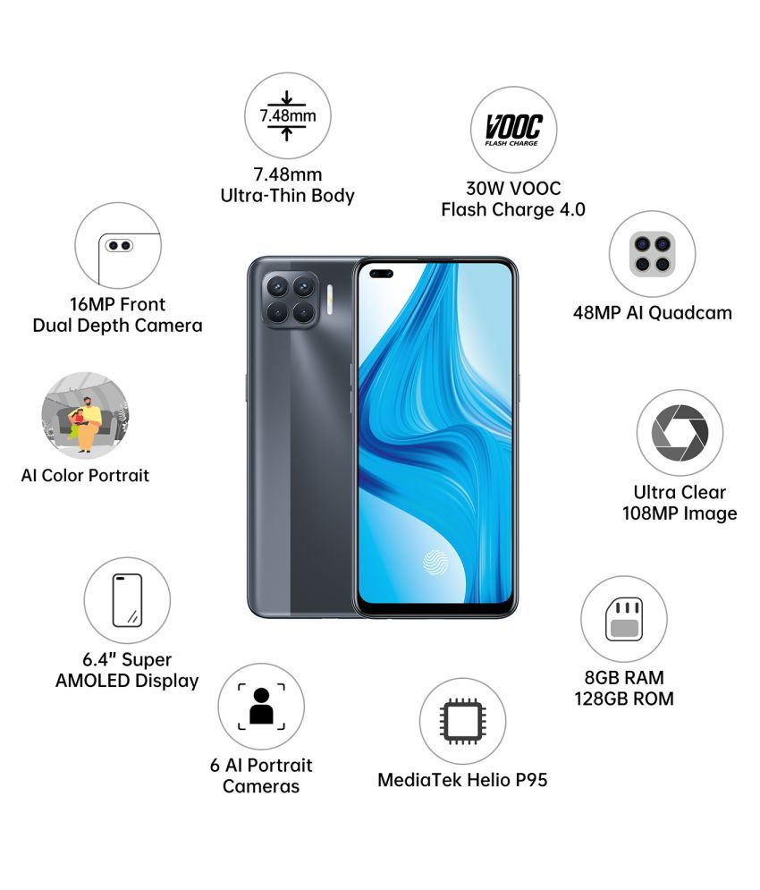 Oppo f17 pro (matte black, 8gb ram, 128gb storage) with no cost emi/additional exchange offers.
